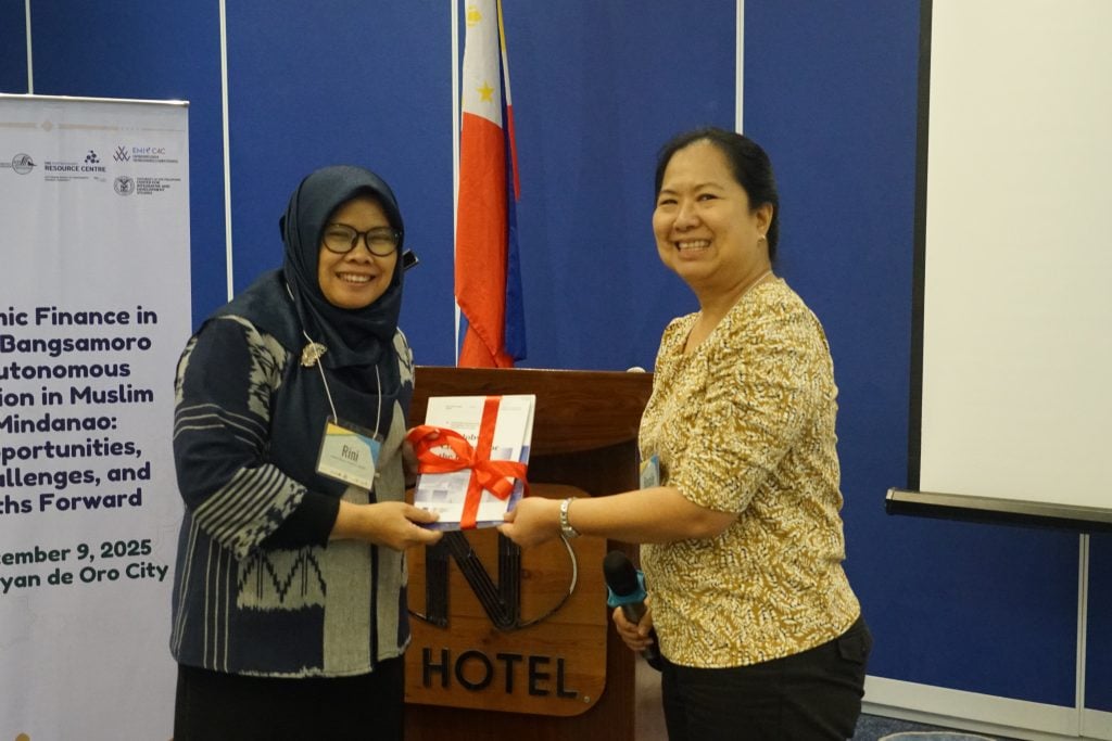 The UP Center for Integrative and Development Studies through its Escaping the Middle-Income Trap: Chains-for-Change (EMIT C4C) Program and the Peace and Equity Foundation (PEF) organized a gathering of partners and key stakeholders in Cagayan de Oro on 9 December 2025 to present the results of the action research on “Islamic Finance in the Bangsamoro Autonomous Region of Muslim Mindanao (BARMM): Opportunities, Challenges, and Paths Forward.” Annette Balaoing-Pelkmans, Ph.D., convenor of EMIT C4C and lead author of the monograph on Islamic Finance published by UP CIDS, underscored that Islamic finance addresses a pressing need to mobilize capital ethically, fairly, and inclusively. It offers mechanisms that share risk, undertake real economic activity, and discourage speculation and exploitation. She notes the importance of community-centered approach in developing Islamic social finance, Islamic microfinance, and Islamic finance models while regulations are being pushed to address implementation bottlenecks. She likewise underscored that Islamic finance will only thrive when there is a halal ecosystem that would require Islamic finance products and services.
